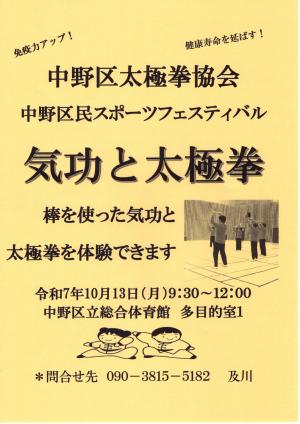 中野区太極拳協会千光前教室の令和7年4月からの開催お知らせです!