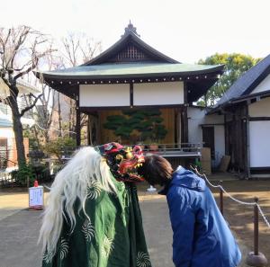 新井薬師桜まつりではお囃子演奏と獅子舞、